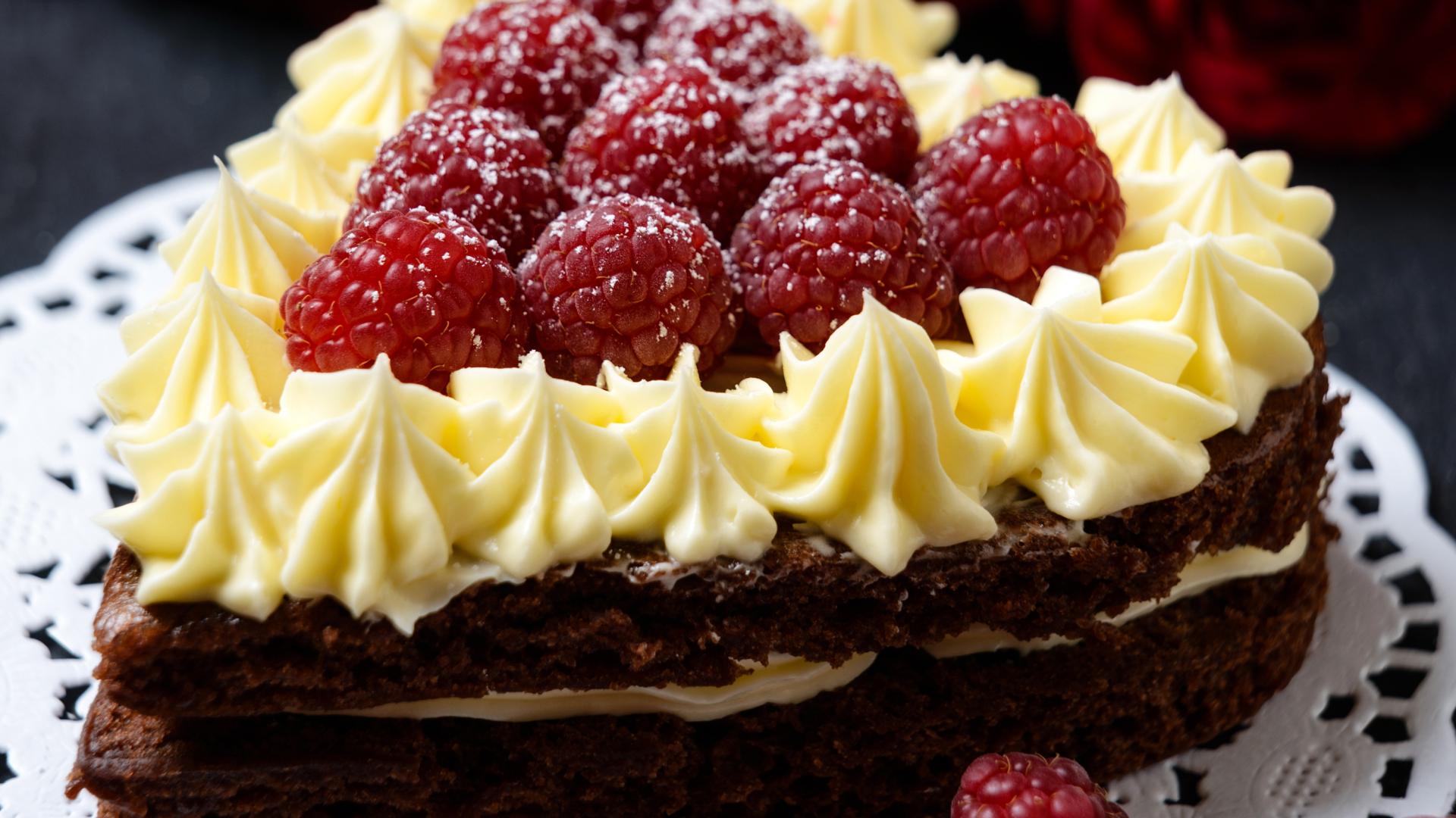 » Обои Торт в форме сердца с кремом и ягодами малины