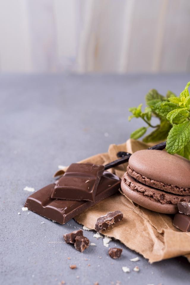 Обои Десерт макарун на столе с шоколадом и ванилью