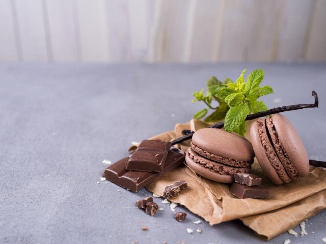 Обои Десерт макарун на столе с шоколадом и ванилью