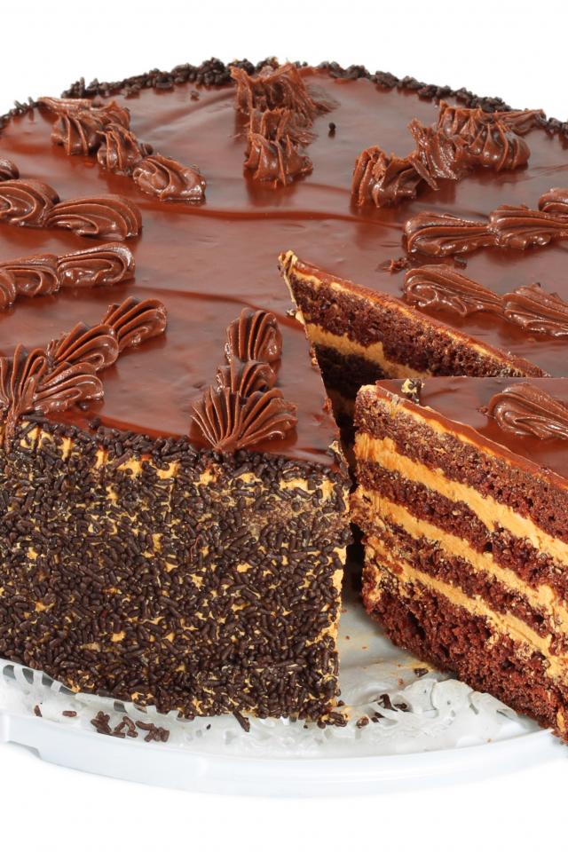Обои Торт с шоколадом на белом фоне