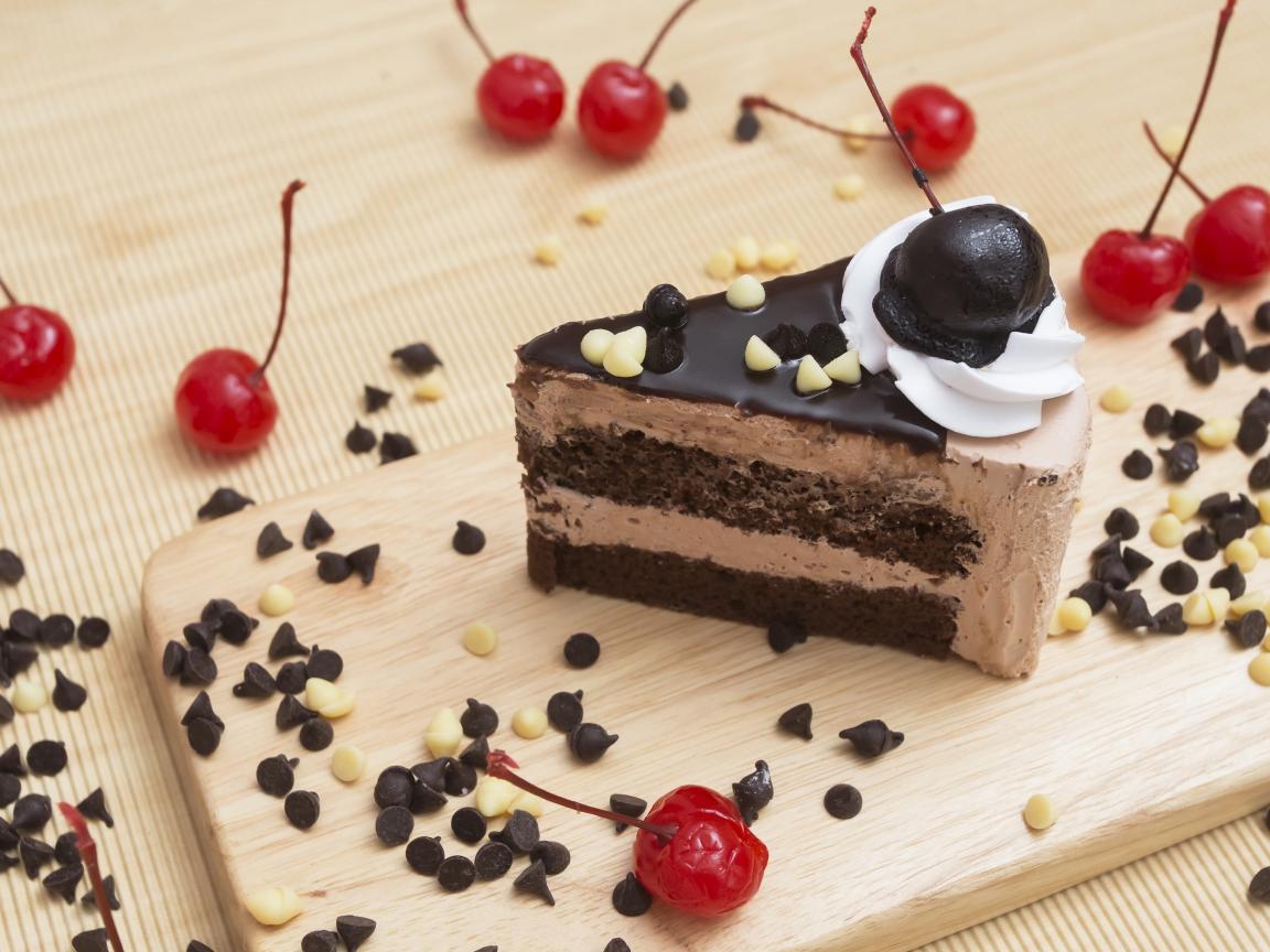 Обои Кусок торта с шоколадом и консервированными вишнями
