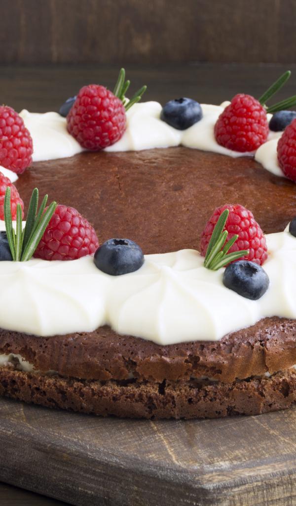 Обои Кофейный торт со сливками и ягодами черники и малины