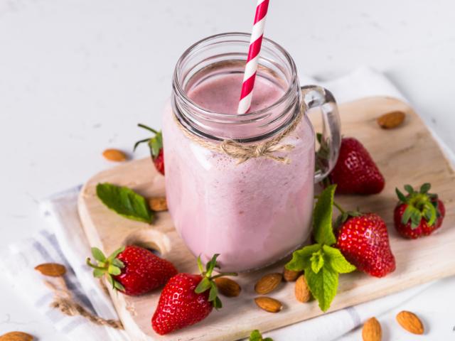 Обои Йогурт в стеклянной банке с ягодами клубники