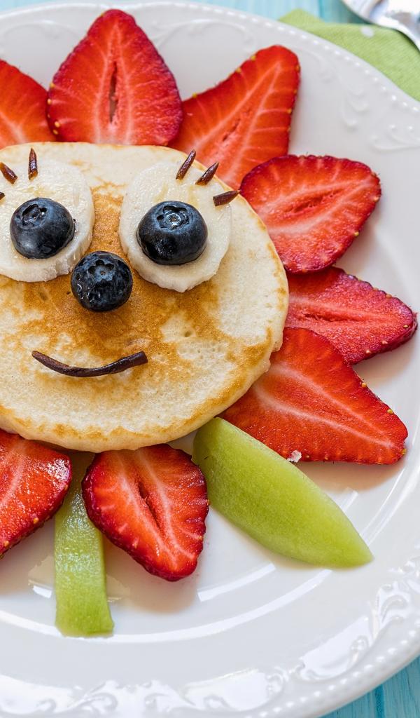 Обои Оладьи с фруктами и ягодами на тарелке