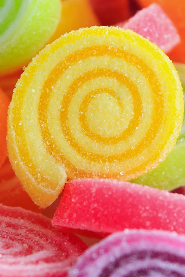 Обои Разноцветный сладкий мармелад в сахаре крупным планом