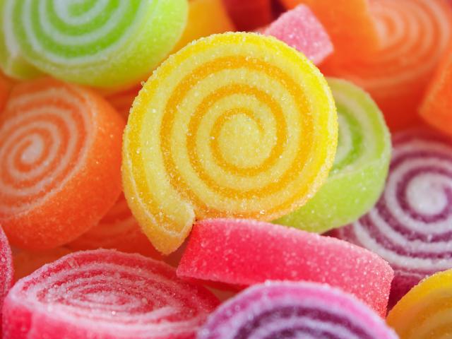 Обои Разноцветный сладкий мармелад в сахаре крупным планом
