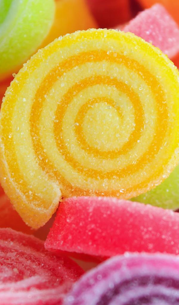 Обои Разноцветный сладкий мармелад в сахаре крупным планом