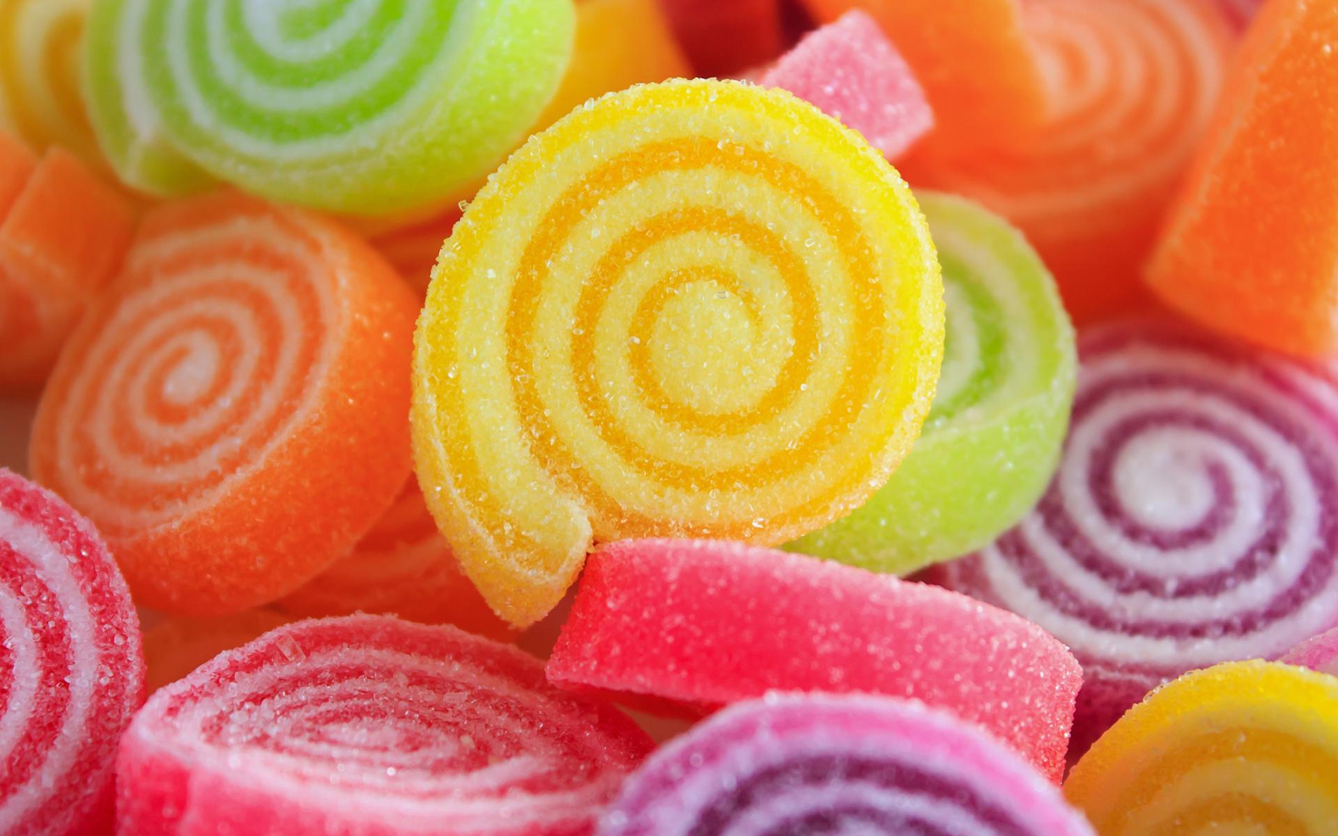 Обои Разноцветный сладкий мармелад в сахаре крупным планом