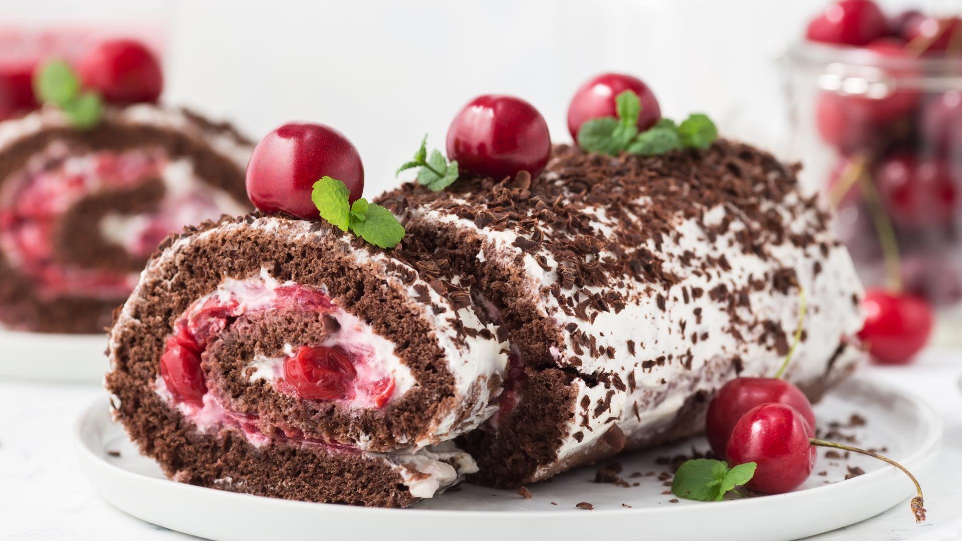 Обои Шоколадный рулет с кремом и черешней