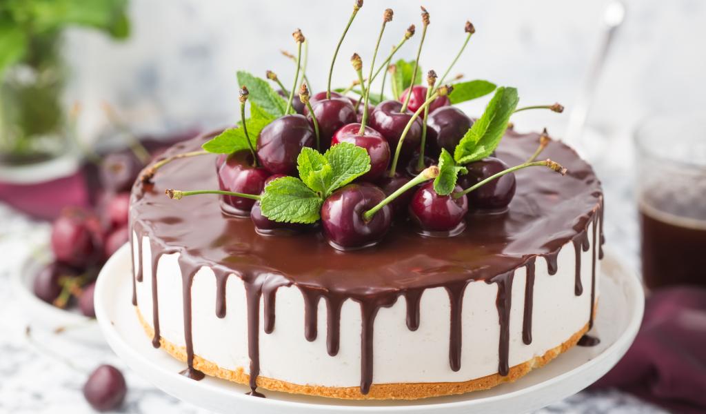 Обои Вкусный торт мусс с шоколадом и черешней