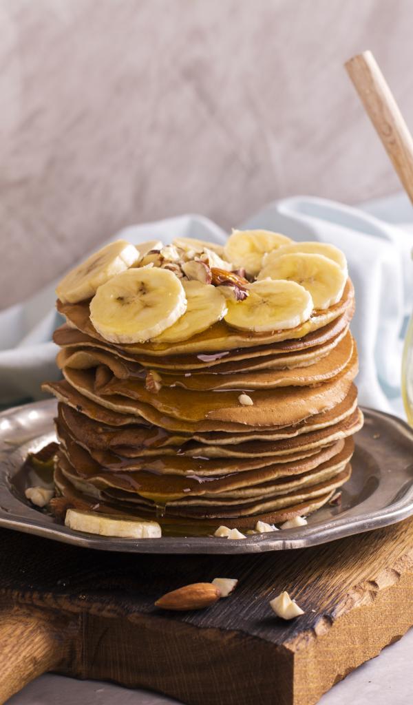 Обои Оладьи с медом и бананами на столе