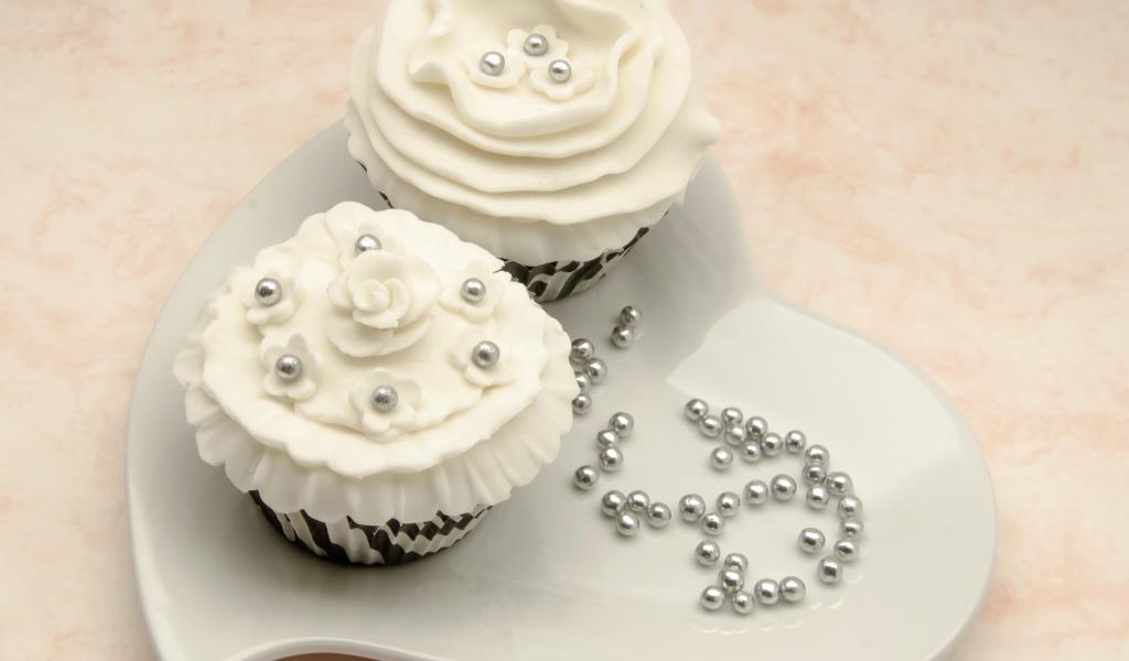 Обои Два красивых капкейка с кремом и бусинами
