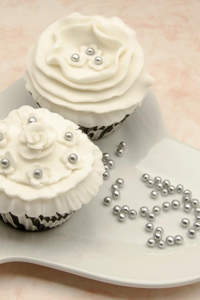 Обои Два красивых капкейка с кремом и бусинами