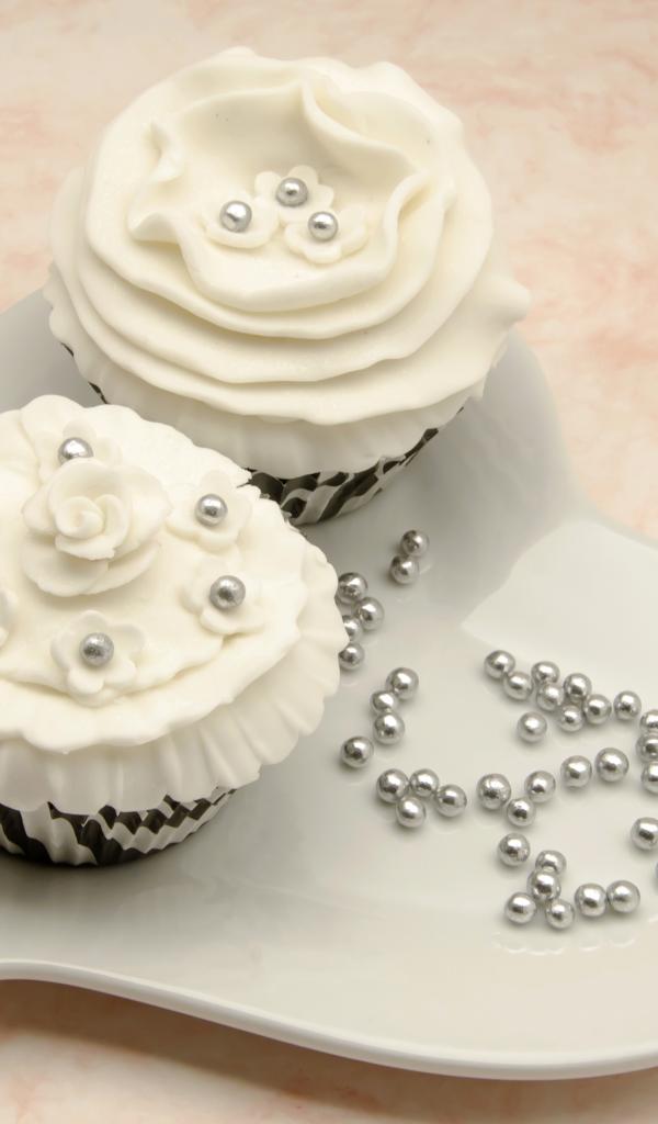 Обои Четыре аппетитных капкейка с кремом на черном фоне