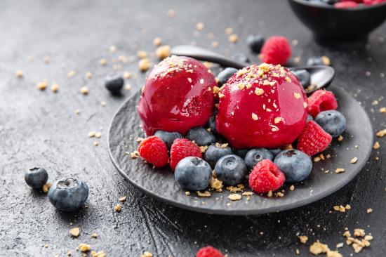 Обои Шарики фруктового мороженого с ягодами черники и малины