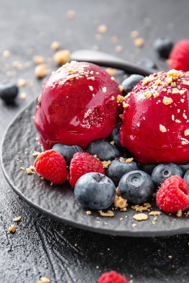 Обои Шарики фруктового мороженого с ягодами черники и малины