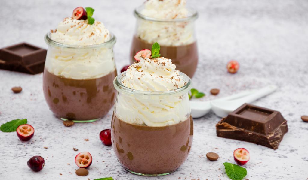 Обои Шоколад со сливками в баночках на столе