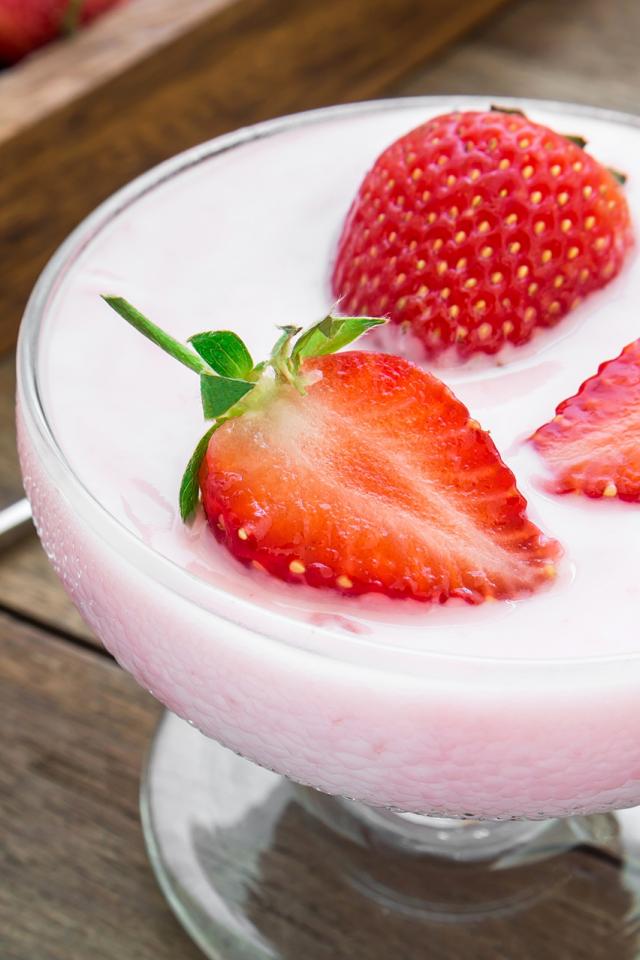 Обои Молочный десерт в креманке с ягодами клубники