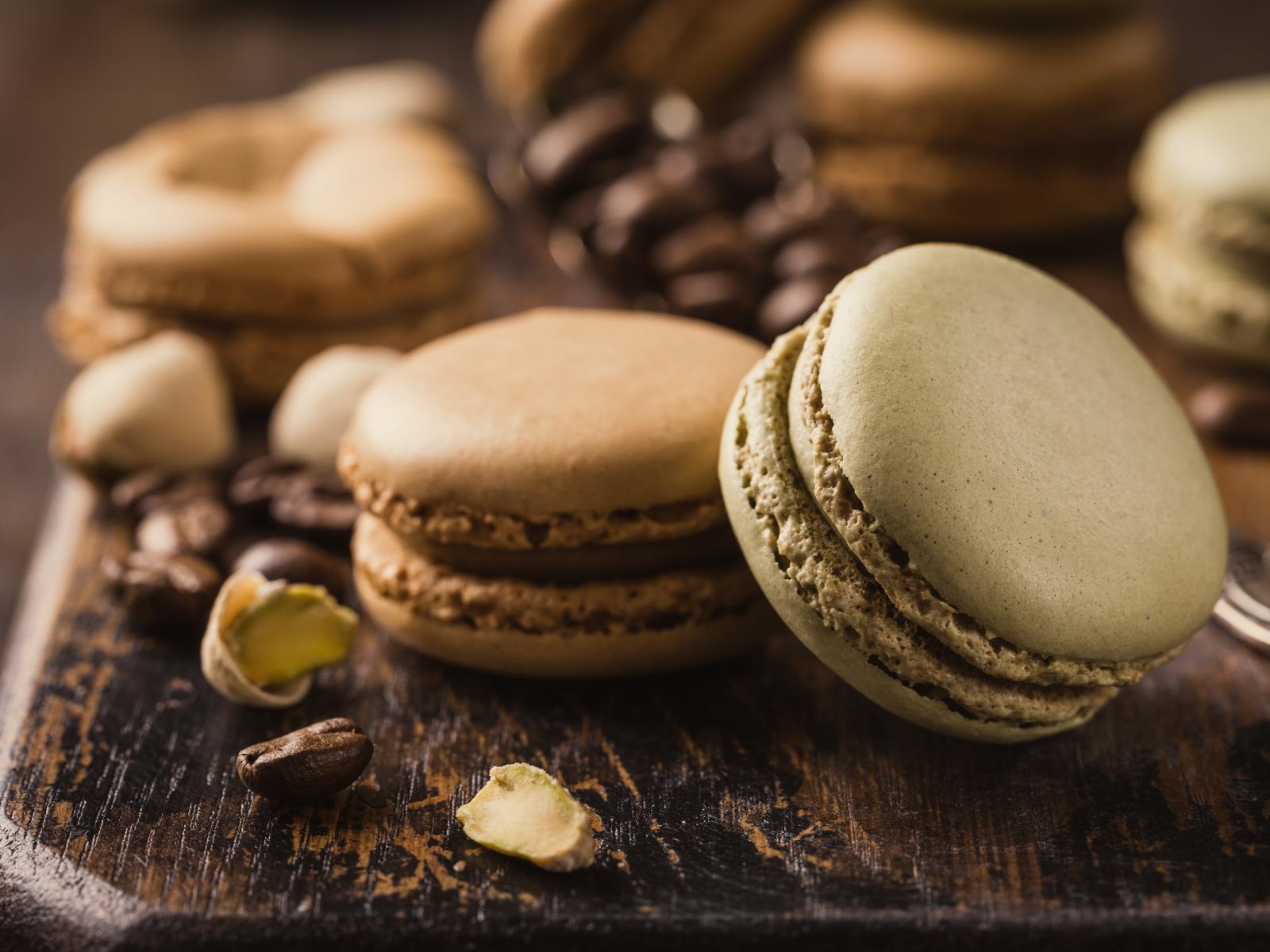Обои Десерт макарун на столе с кофейными зернами