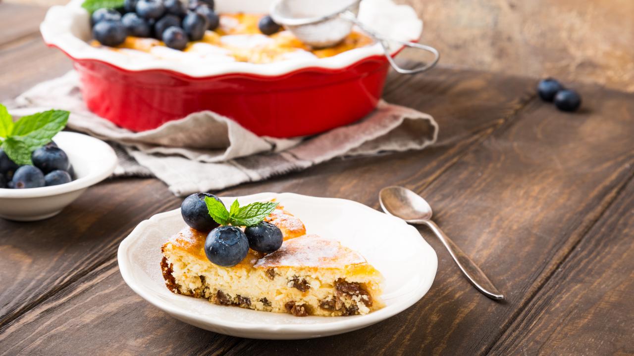 Обои Пирог с изюмом и ягодами черники на столе