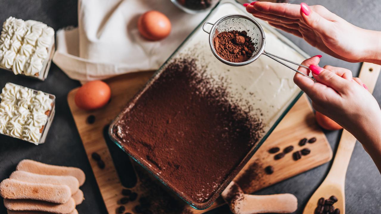 Обои Аппетитный десерт посыпан какао