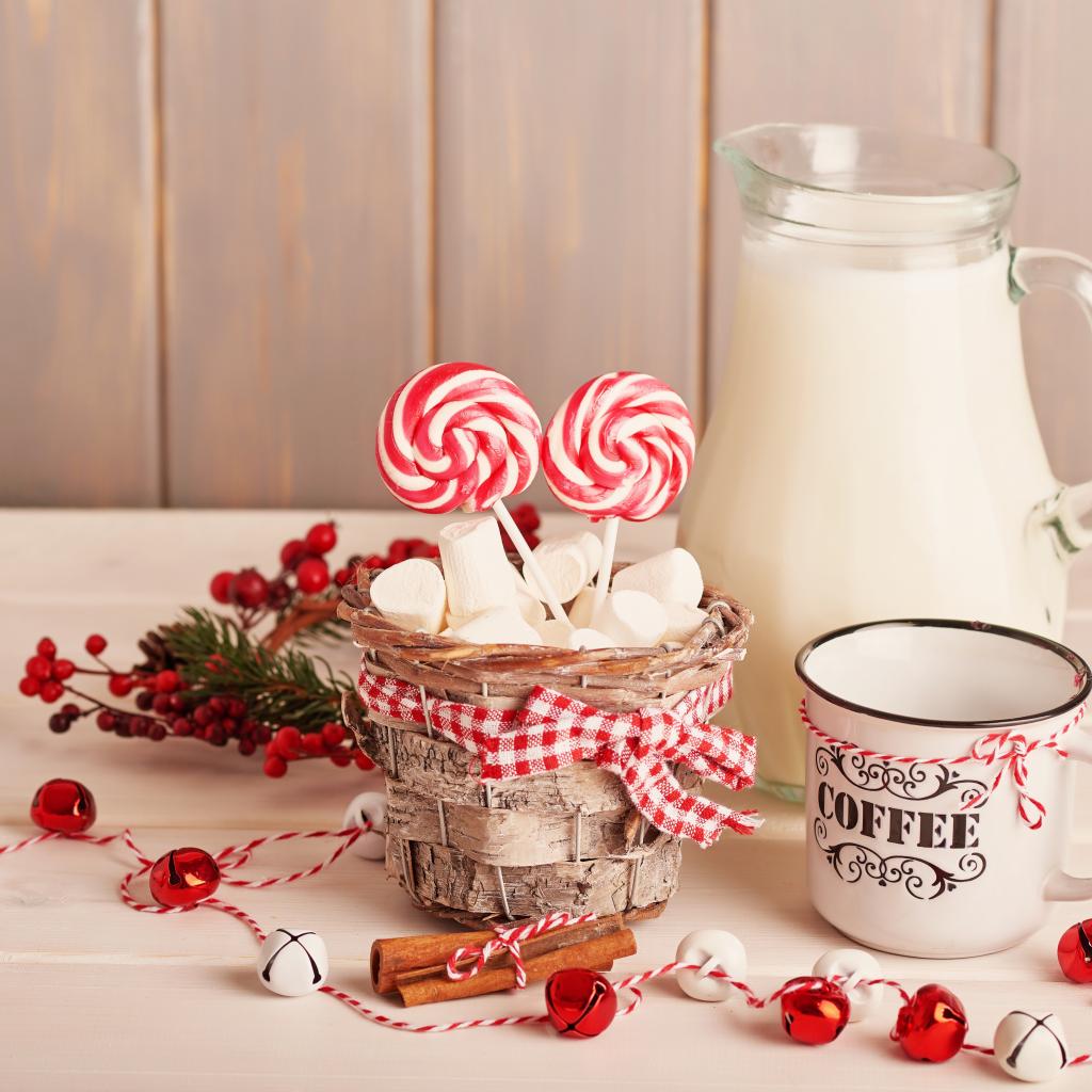 Обои Маршмеллоу на столе с кофе и молоком