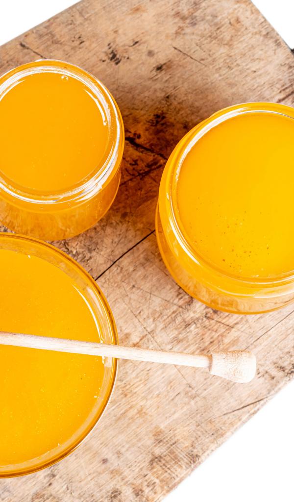 Обои Свежий мед в банках на деревянной доске на белом фоне