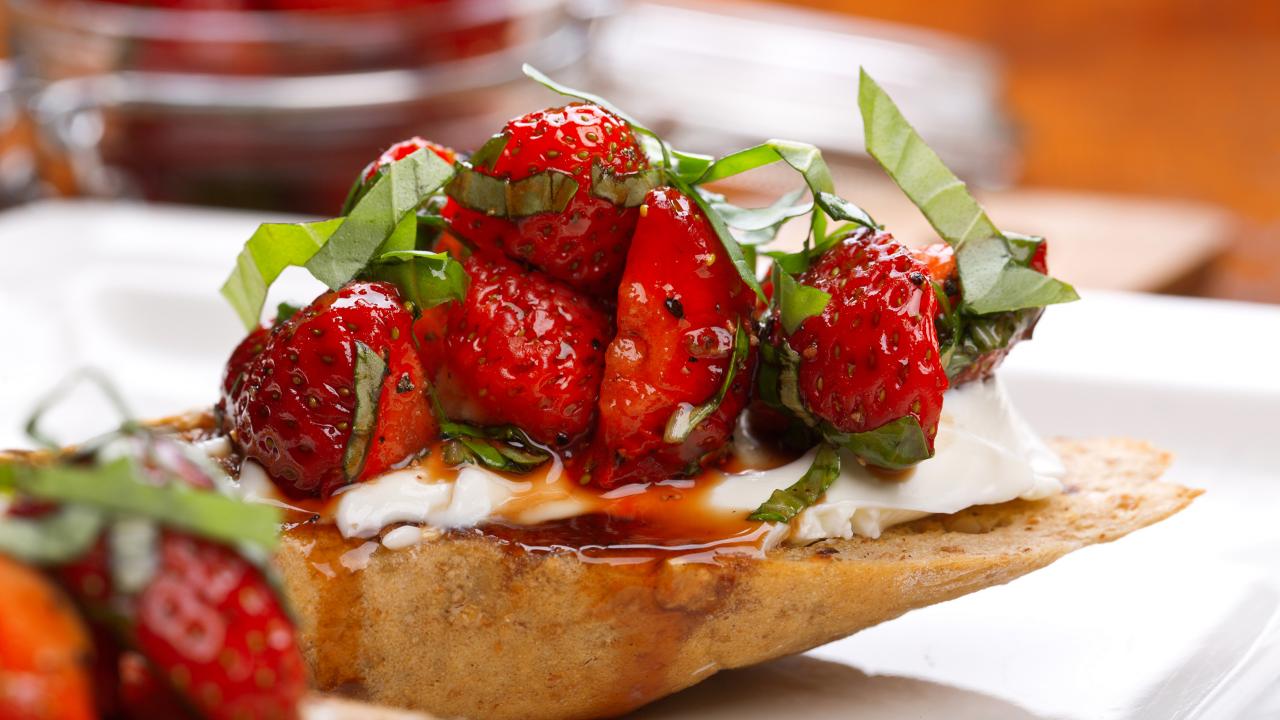 Обои Кусок хлеба с джемом, сыром и клубникой