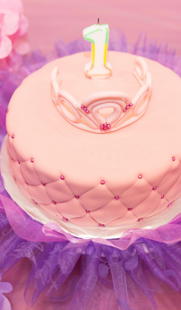 Обои Красивый розовый торт на день рождения 1 год