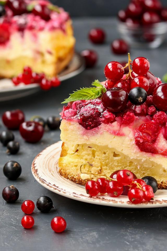 Обои Кусок пирога с ягодами и творогом