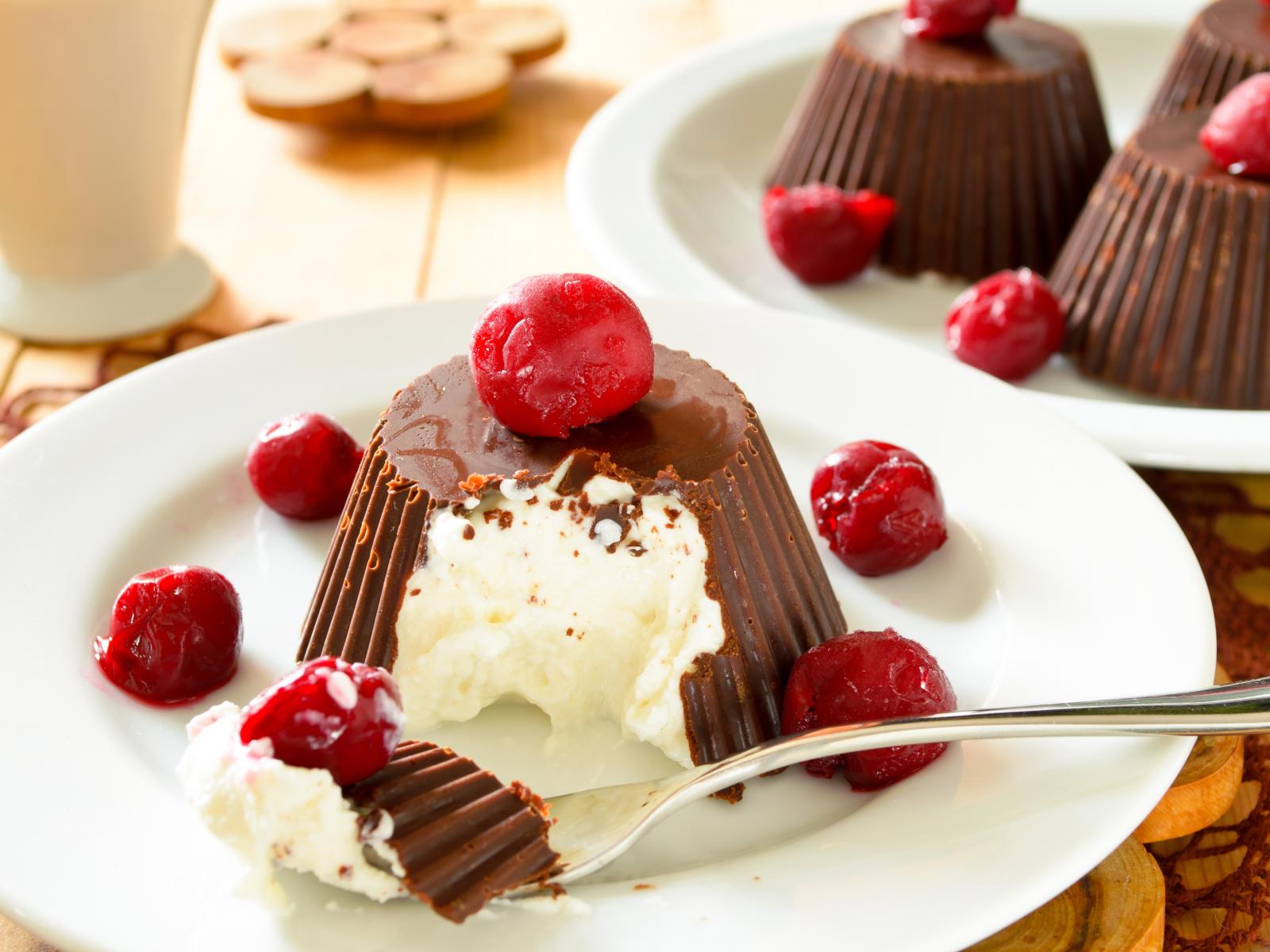Обои Творожный десерт в шоколаде с вишней