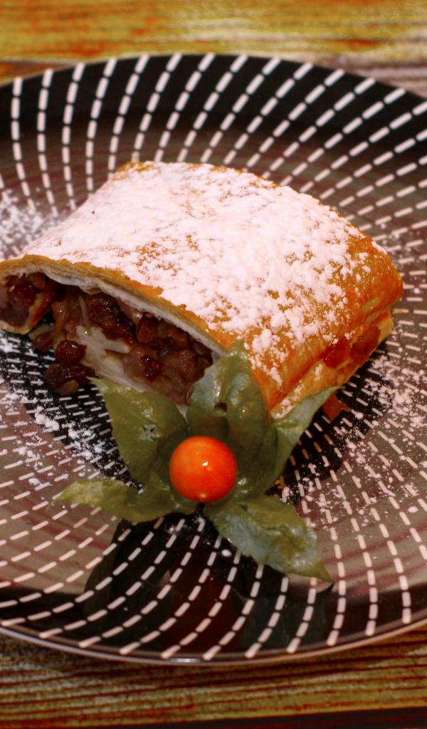 Обои Кусок яблочного штруделя на тарелке