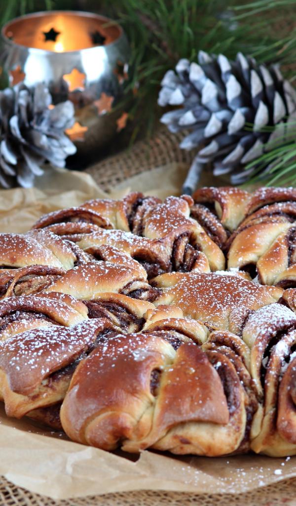 Обои Сдобный венок с вареньем на столе с шишками