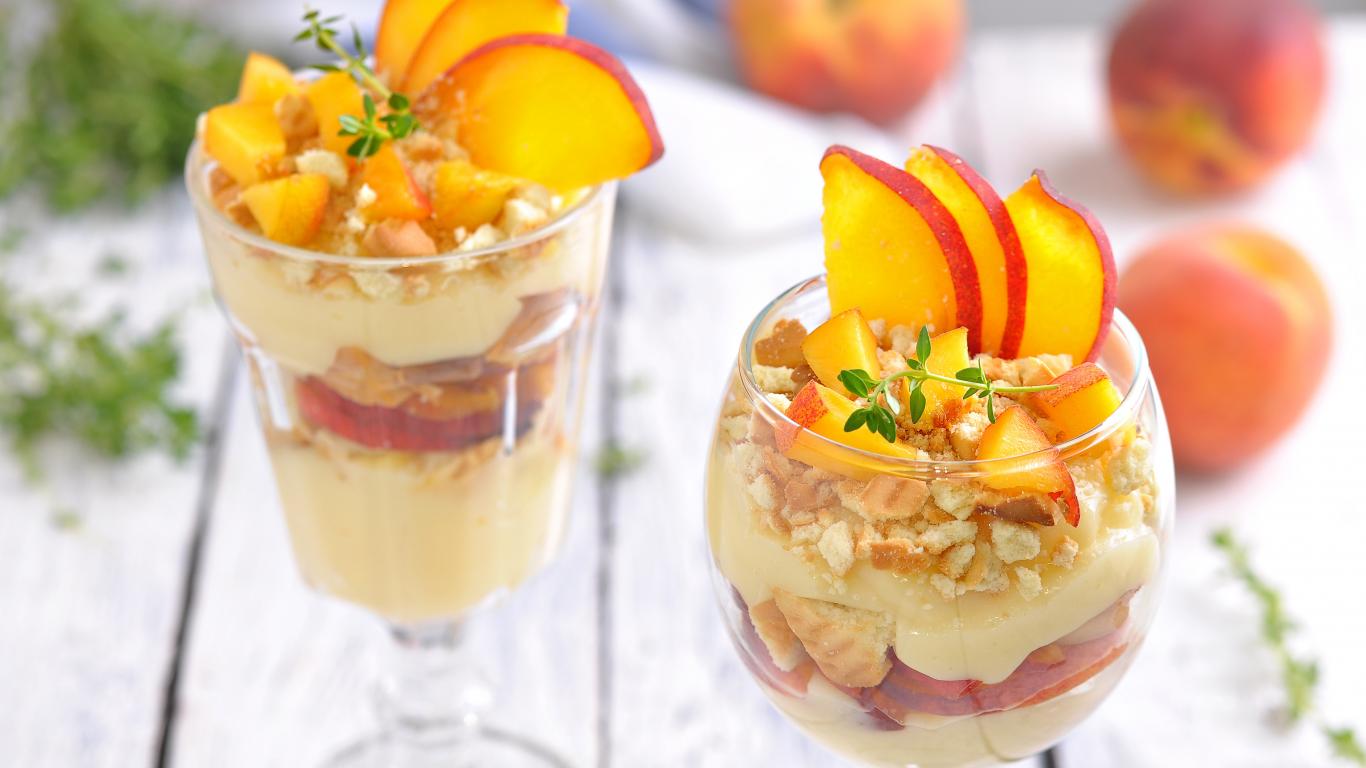 Обои Десерт в стаканах с кусочками свежего нектарина