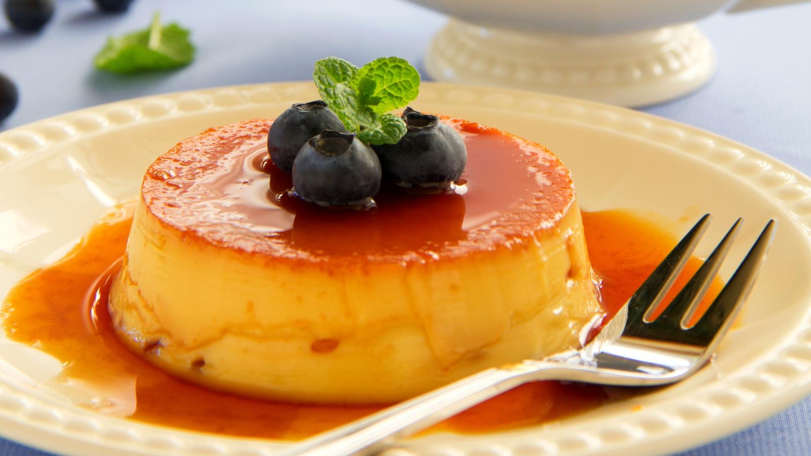 Обои Творожный десерт с сиропом и ягодами черники
