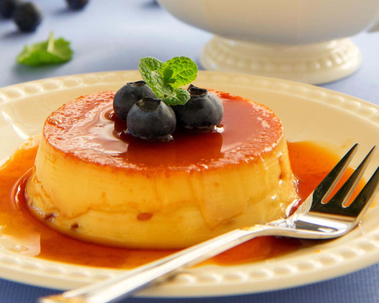 Обои Творожный десерт с сиропом и ягодами черники