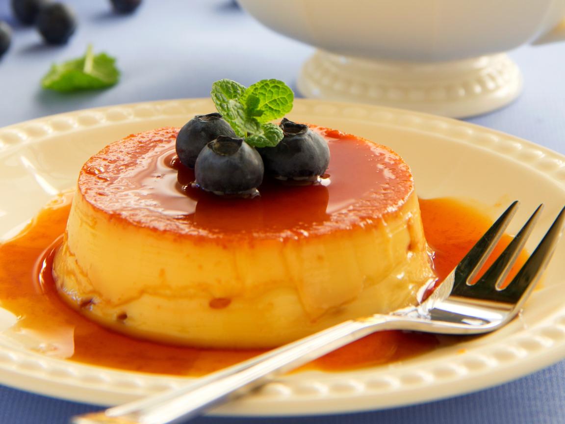 Обои Творожный десерт с сиропом и ягодами черники