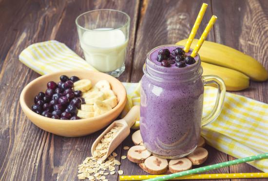Обои Молочный коктейль с ягодами черники и бананами