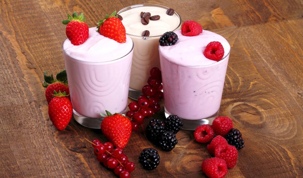 Обои Молочные коктейли с ягодами малины, клубники и ежевики