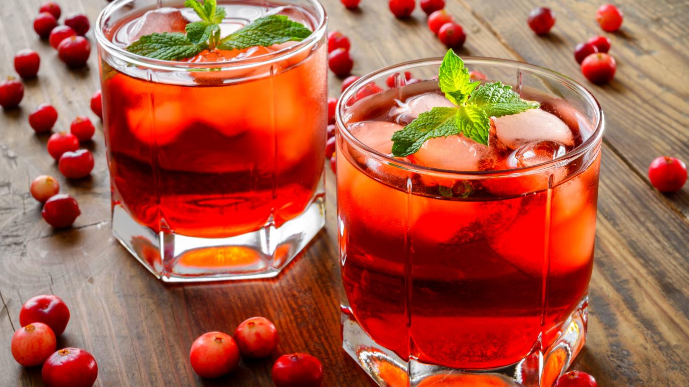 Обои Освежающий напиток с клюквой и мятой