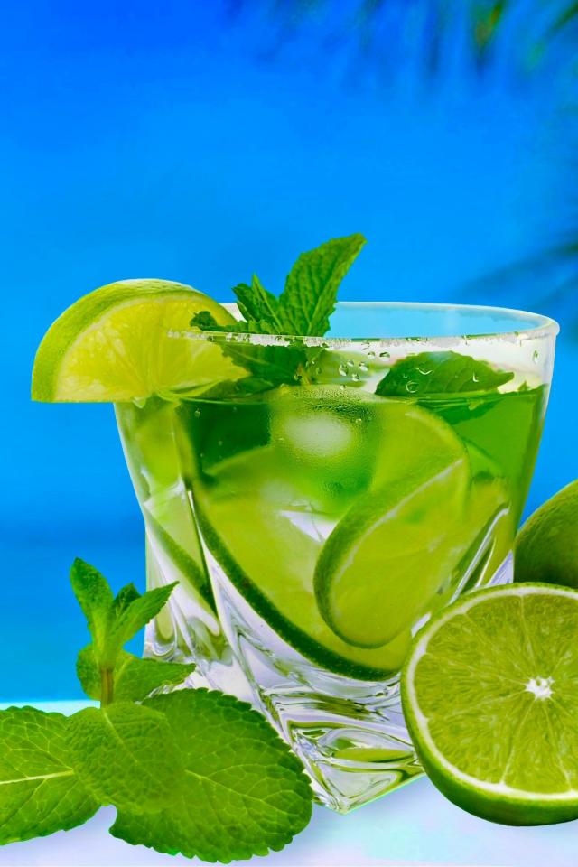 Обои Стакан коктейля с зелеными лаймами