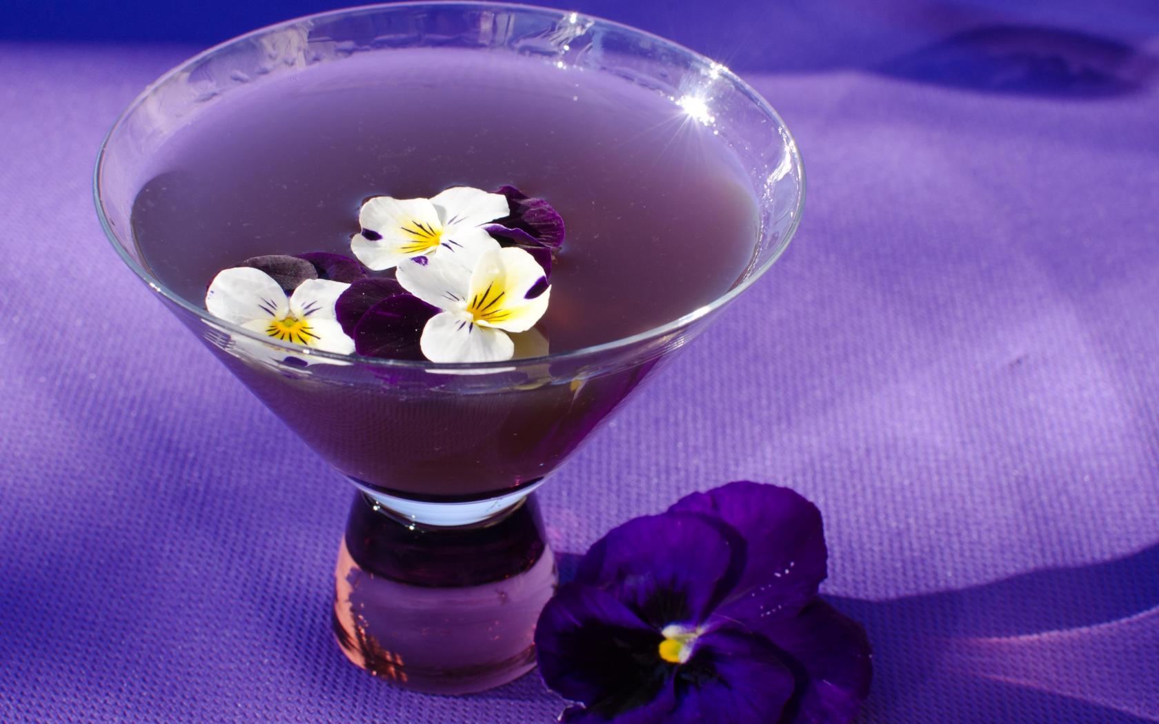 Обои Фиолетовый коктейль Сангрия с текилой и цветами фиалки