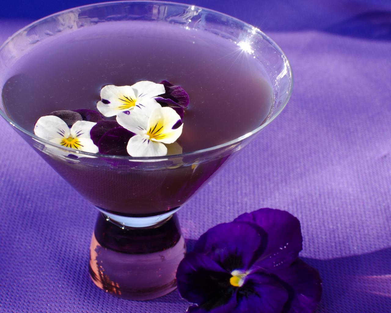 Обои Фиолетовый коктейль Сангрия с текилой и цветами фиалки