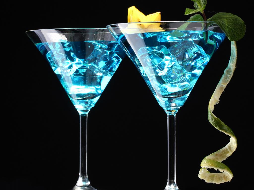 Обои Коктейль Бомбей со льдом, лаймом и джиной на черном фоне