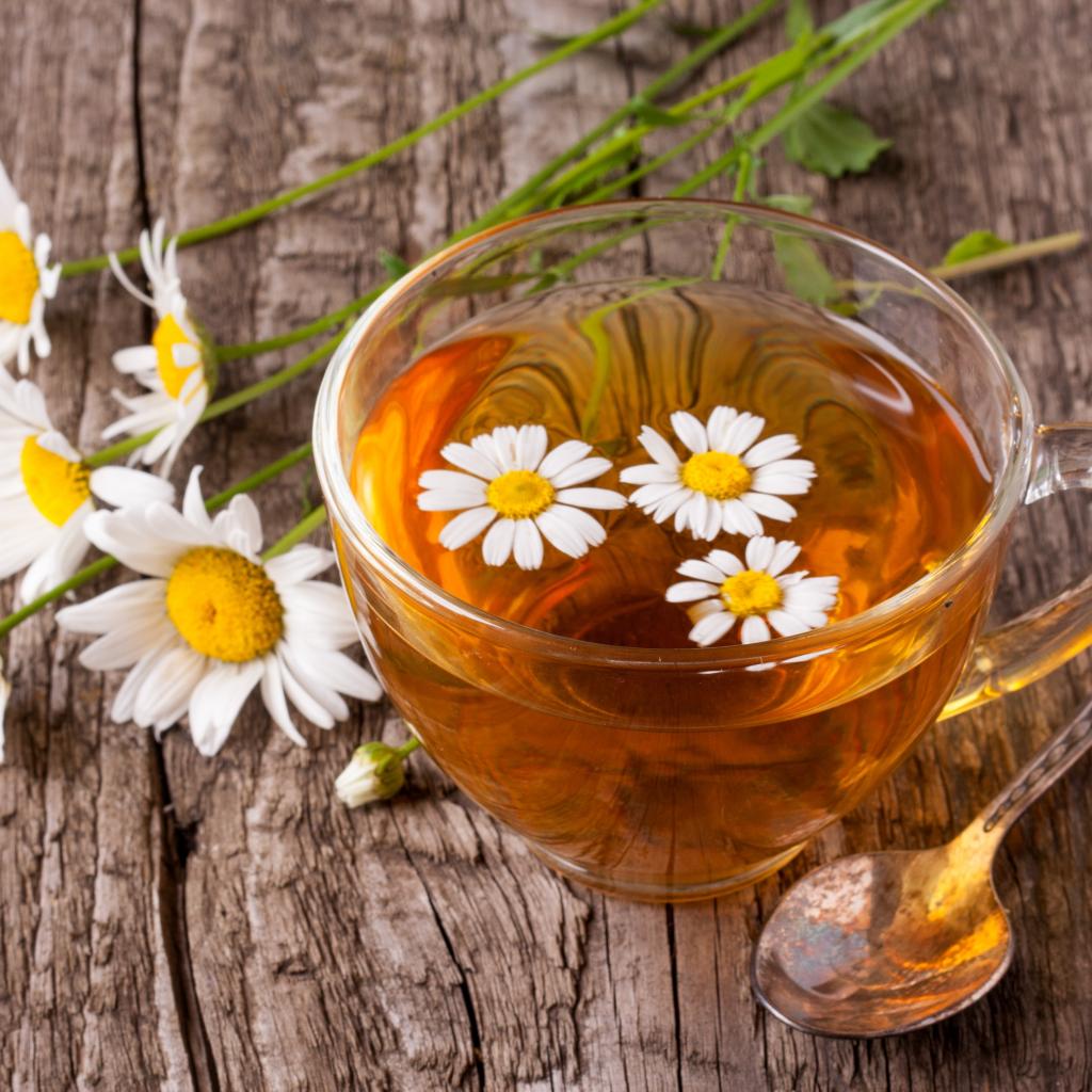 Обои Стеклянная чашка чая с ромашкой