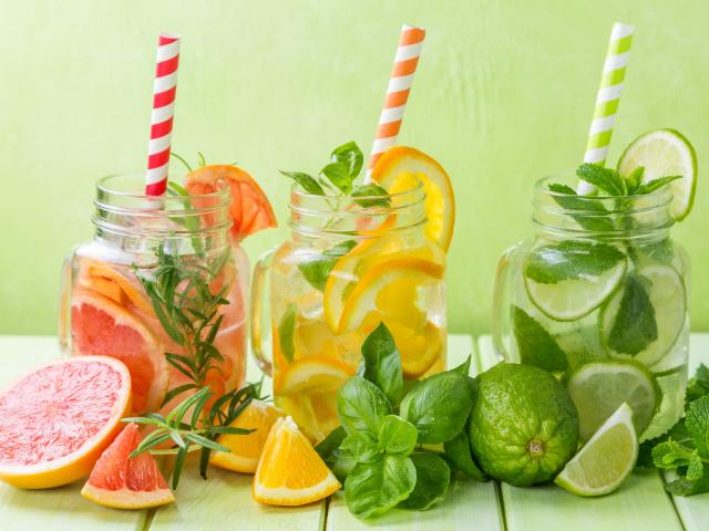 Обои Цитрусовые коктейли в баночках с трубочками