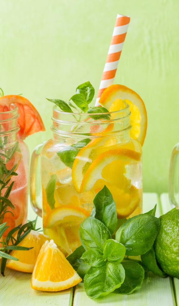 Обои Цитрусовые коктейли в баночках с трубочками