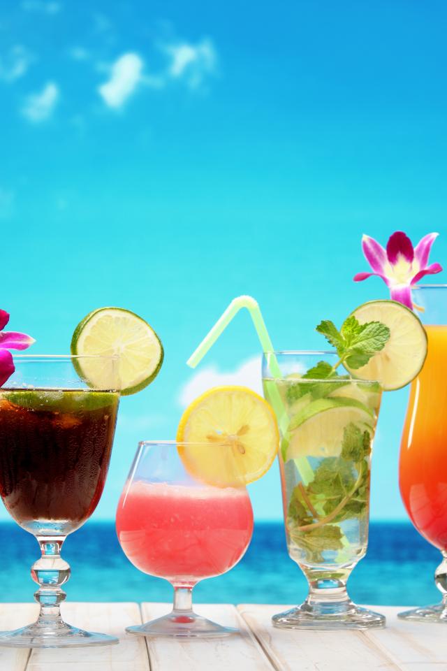 Обои Тропические коктейли на фоне голубого неба