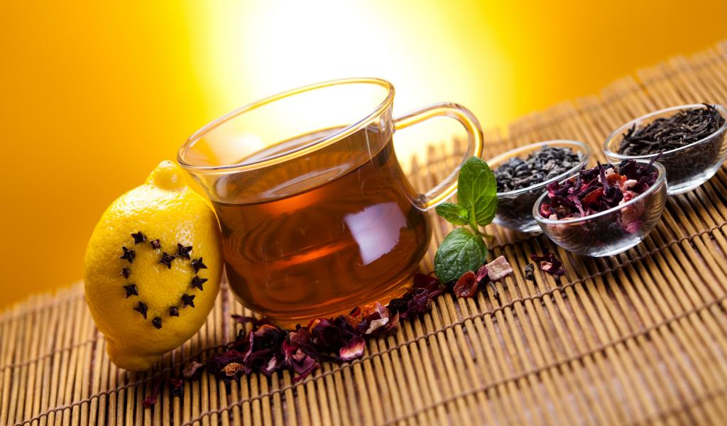 Обои Заваренный чай в чашке на столе с заваркой и лимоном