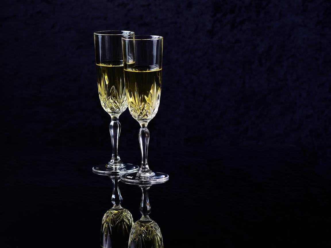 Обои Два бокала с шампанский на черном фоне
